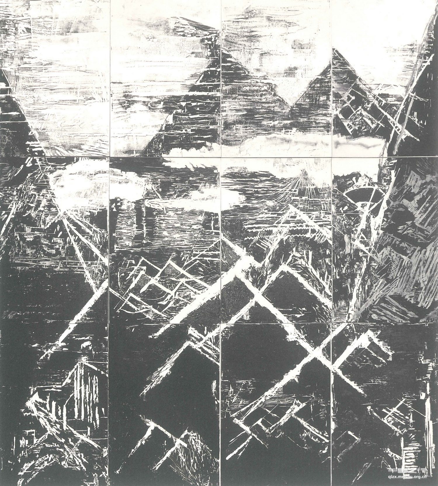 大山,强烈的视觉冲击,富有形式感的画面。在作者眼中,山不是山,景不是景,而是内心情感的移转,是自然美与艺术创作美的承载。画面通过有序的黑白处理,放刀直取的表现,很好的体现了这种内心感受。
