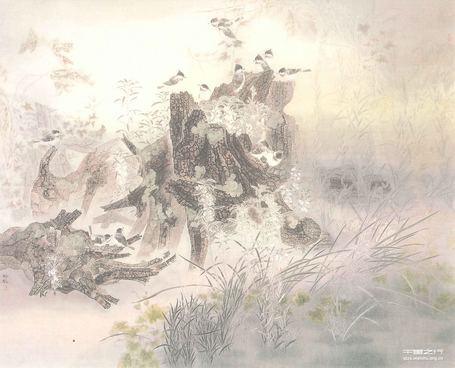 “美是到处都有的,对于我们的眼睛,不是缺少美,而是发现美”,想借此创作,再次阐述罗丹这句美学经典。虽然这是笔者外出写生遇到被遗忘在角落的一处平凡的景象,但雨后枯木的苍润,穿插错落的凤仙花和游戏的山雀构成的生机之感让人耳目一新。如此简短的道理,只为诉说美的事物无时不有,无处不在。