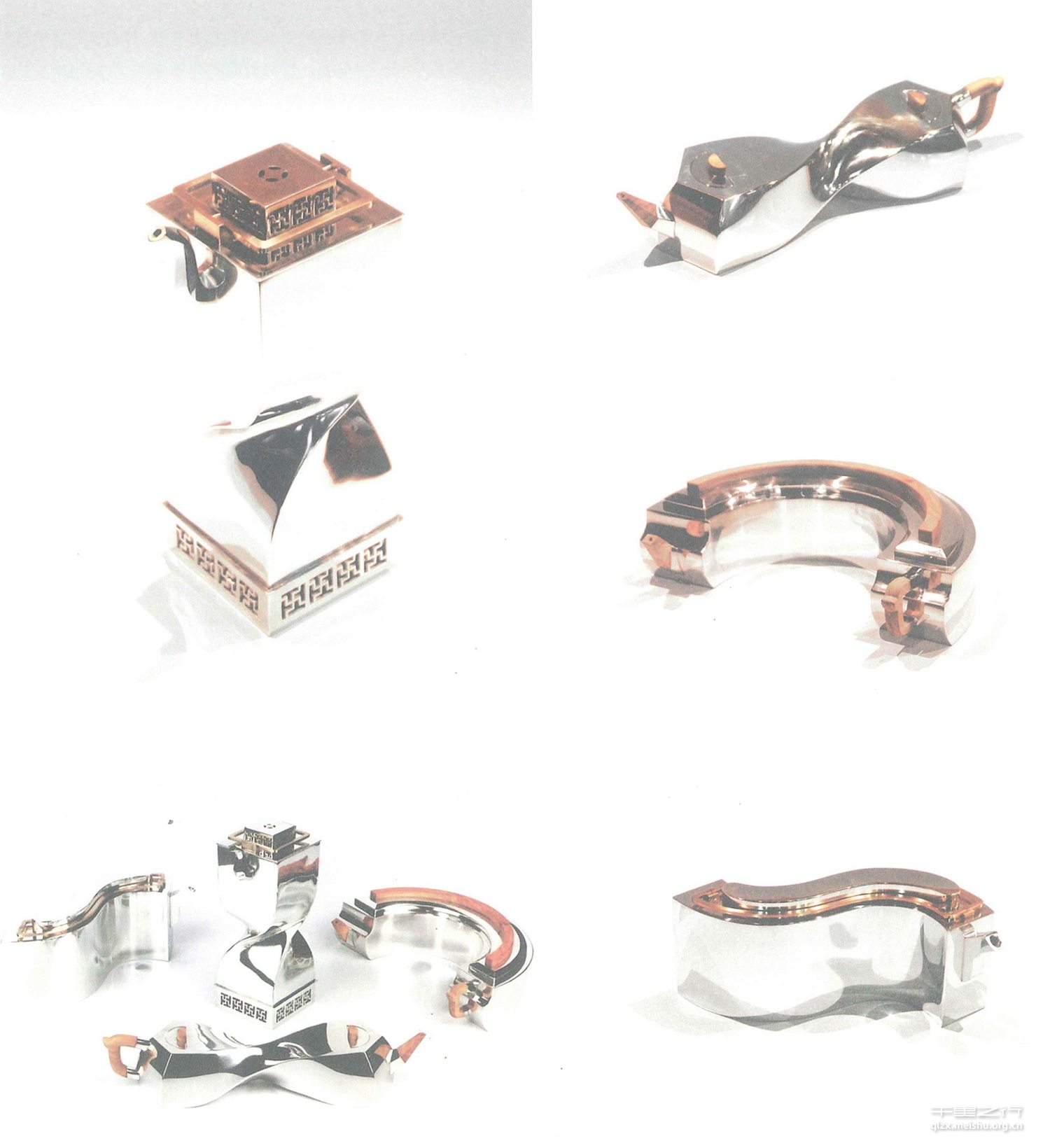 该作品通过对器型的重新设计将当代艺术的表现方式介入到锡器工艺中来,对中国传统的典型锡器进行解构和转化,通过偏心、扭曲、拉伸、回转等手法,产生一种不安定且具有运动感的形态,加之镜面曲面与环境的互动给观者独特的视觉体验,对传统器型和功能性的颠覆带来较大的想象空间。