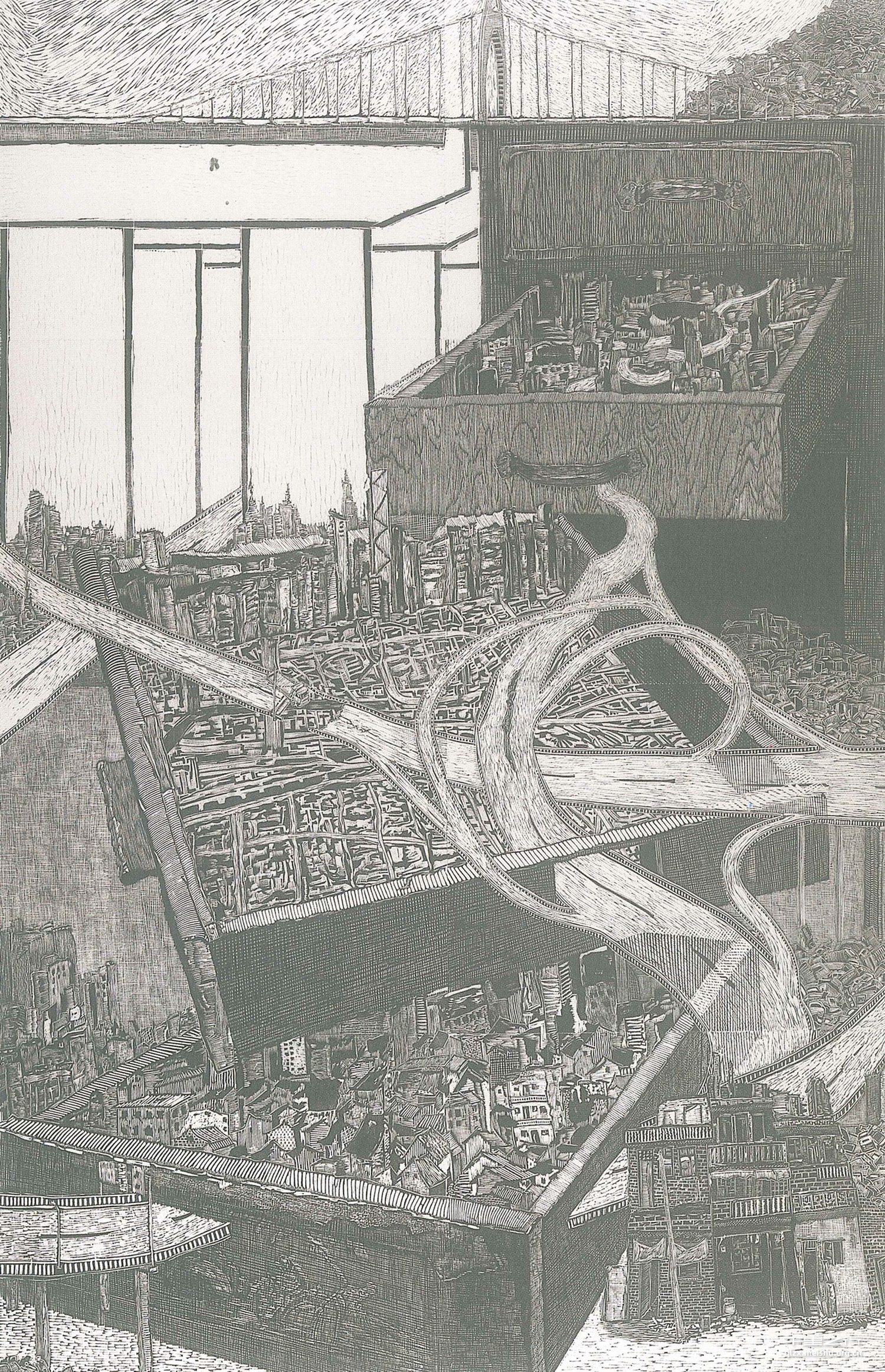 我们的生活空间的状态在不断发生改变,任何事物都存在两面性,而这样的改变究竟好或不好这很值得我们深思。我创作作品的本意就是,表达我对我们生活空间的记忆、印象、感觉及思考。