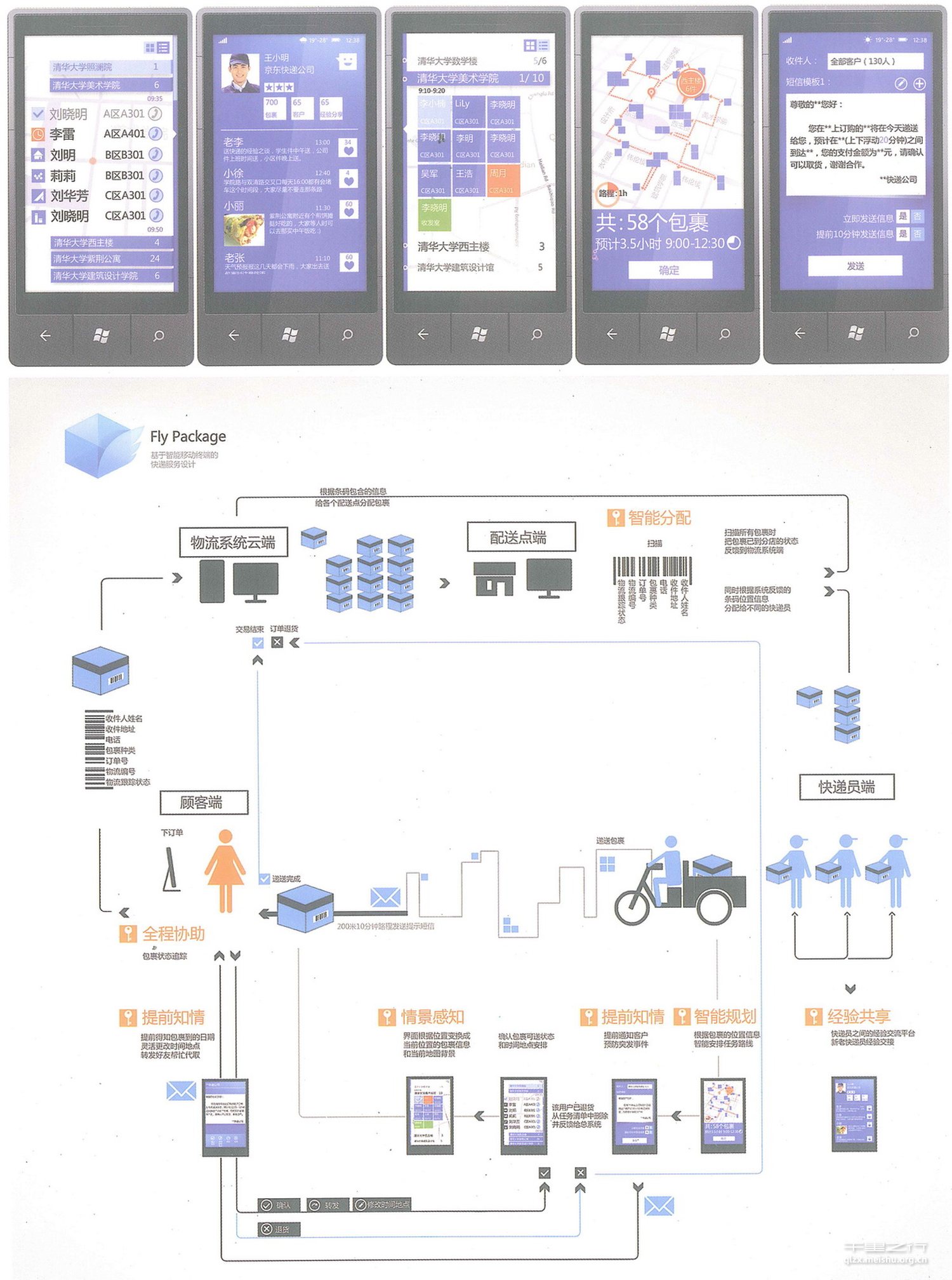 本项目以城市中的日常快递服务为设计对象,目标是结合智能移动终端,通过研究快递服务参与者和快递服务流程的特点,发现现代快递中存在的问题,最终设计完成了新的服务设计流程和基于情境的交互设计解决方案,并以智能移动终端界面为载体来呈现整个设计创意和理念。