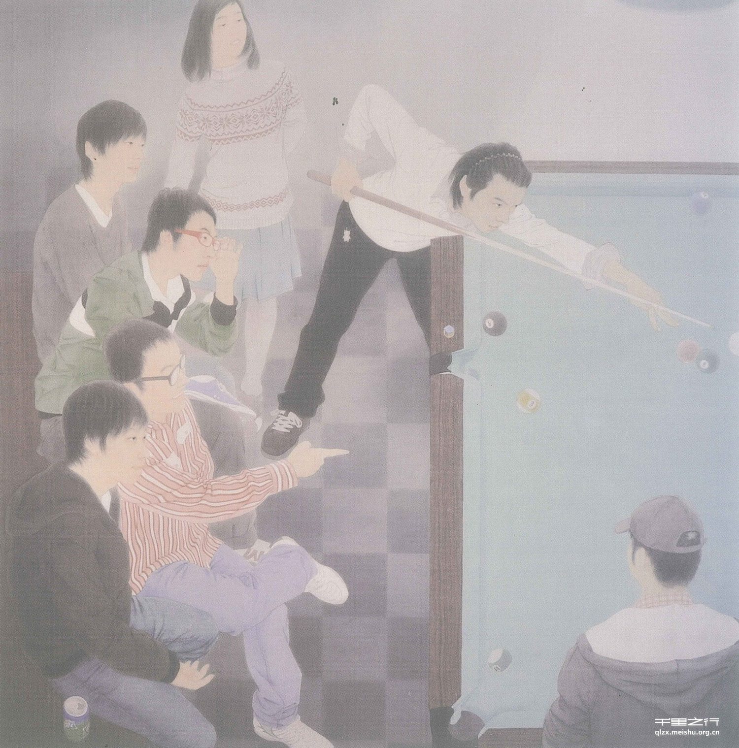 通过构成一个生活场景,用较为写实的手法塑造形象,把形式感的新视觉触动与传统的技法融入,尝试探索当下工笔人物画的创