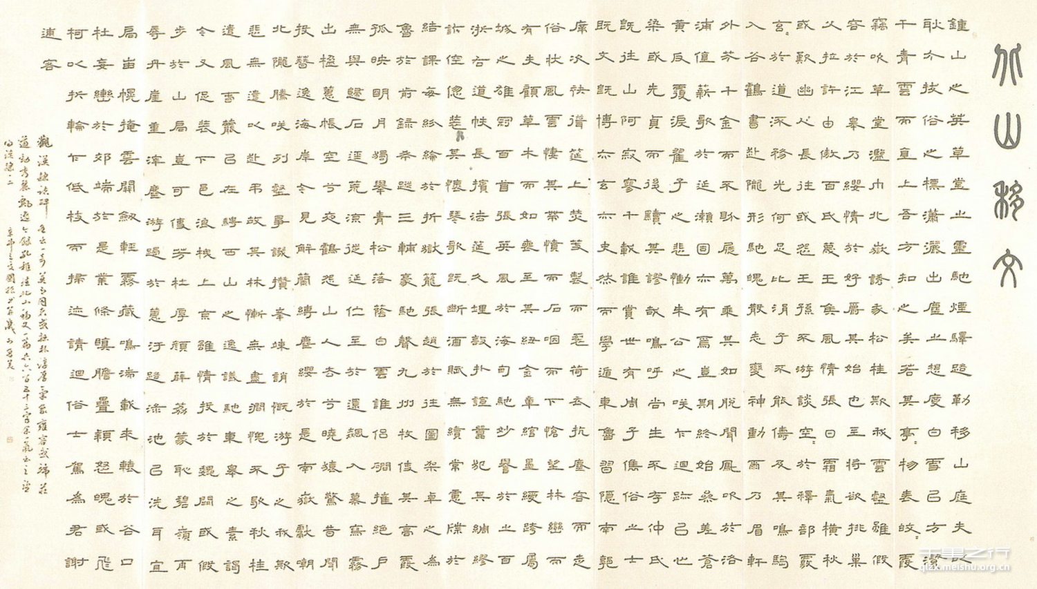 这件隶书作品在创作上主要取法于朝侯小子残石,张景碑。当然也有本科期间对礼器碑、乙瑛碑等汉隶的学习积累。线条上追求沉稳干净,加入了类似中山王器等青铜铭文的线条意象,使七张八尺的大尺幅创作不失端庄,传统而不保守。整体效果上追求静穆的庙堂之气,我认为这件隶书的创作无论是对个人本科阶段的成果汇报还是专业学习中的探索都还是有一定意义的。