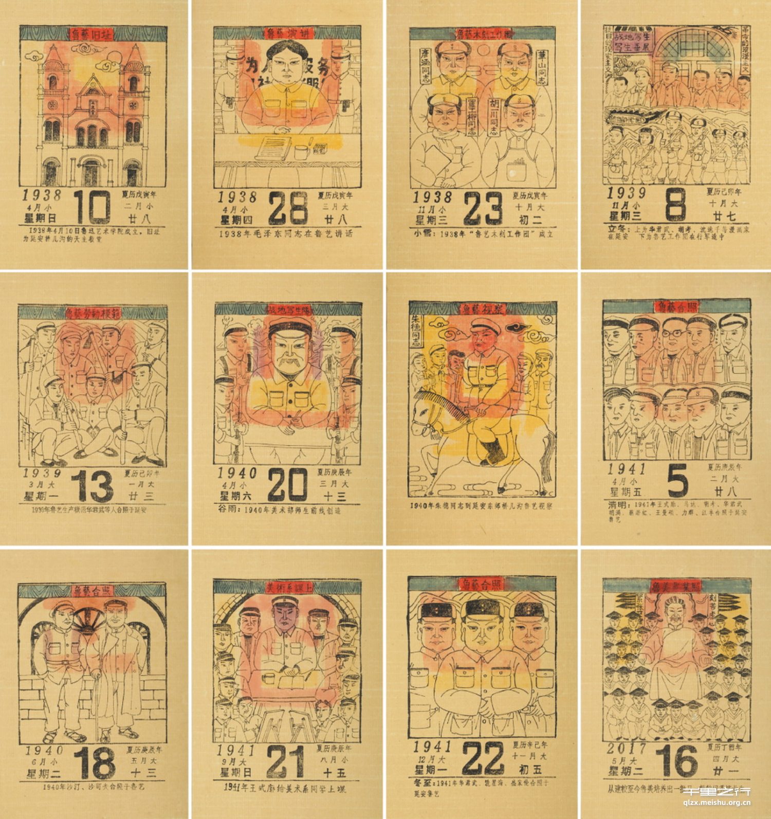 刘楠的作品借用了传统民间纸马和日历的风格样式,以老鲁艺的老照片为线索,进行了大胆的尝试与再创作。画面以线为主,造型夸张、朴素,富有极强的形式美感。这缘于她对民间绘画的挖掘与研究。她用自己的作品证明了她对鲁美深深的感情。立足于本民族文化并从中吸取营养,源于生活,关注当下,艺术才有创新与发展。