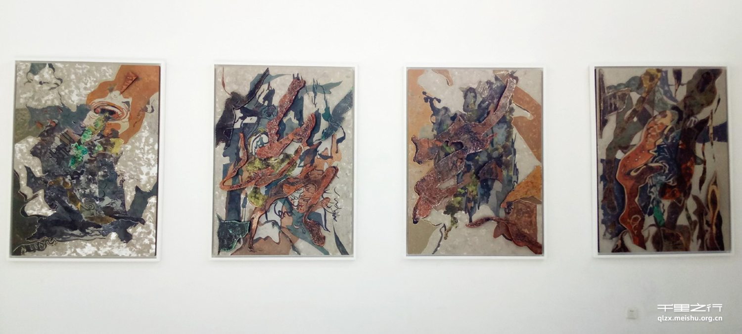 戴燕怡的这件作品《嶂》在画面上层次十分丰富,多层叠加又富有流动感的形状为观者营造了一种复杂的视觉关系,这种关系的建立让人联想到山体地貌的层峦叠嶂,山涧流水的叮咚作响,绿石青苔上的斑斑点点,空气氤氲中的涵养水源。在流动与凝固之间,起伏与平坦之间,戴燕怡用诗体一般的抽象表现方式师法着自然的造化和精神。在材料的运用上,她作了许多实验性的尝试,逸出传统漆画的刻板装饰,综合纸片浮雕,高温烤箔等不同材料的试探,在大漆艺术中延展出一些新鲜的体验。