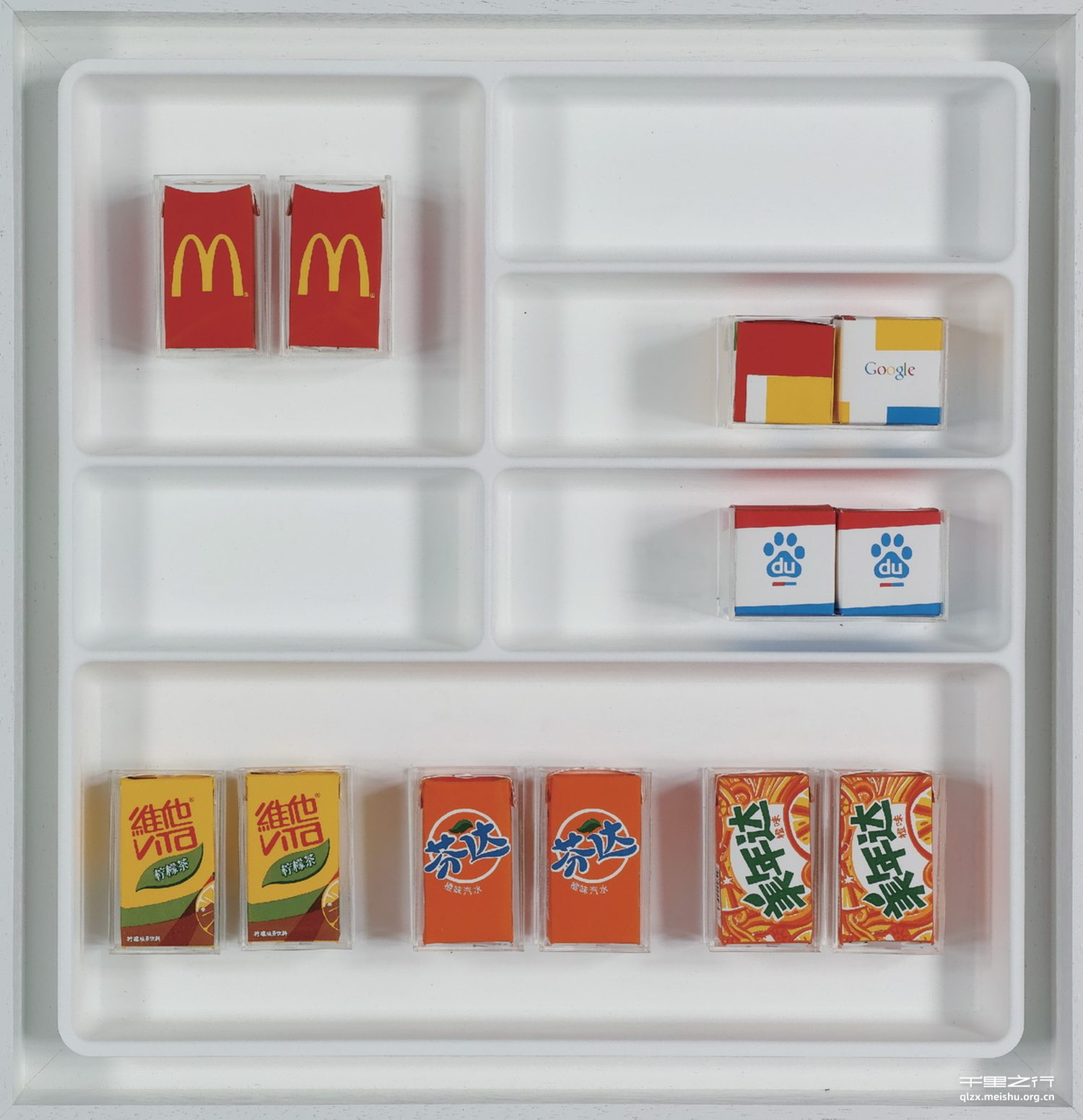 安全感的本质是通过自己的努力和生活进行的一场等价的物质交换。而我把这样的物质交换,寄予在商品包装上,成功的商品包装,会由颜色、图像、字体、版式等构成一个品牌的“符号”。一些经典的包装之所以会成为经典,除了本身的设计外,还有更重要的一点就是“陪伴”。从开始单纯被商品的外包装所吸引来纯粹的复制,到改变包装的体量,甚至到“造”一个商品本身并没有推出的包装盒。所有的包装都用盒子来作为唯一的载体,呈现出空间感和包裹感。不同于以往的商品包装印刷方式(机器印刷),手工绘制胶片的手段与结果本身存在着一种冲突关系,通过纯粹手工的步骤完成最终的非手工的效果,却又保留一点手绘性,这也是“包装”本身意义的一种置换。创作的过程中保留商品原包装的精致和工业感,本身也是对包装本体的尊重。作品看似是对商品包装简单的复制,却充满小心思,背后更有种说不清楚的态度,这态度或许是对于工作和绘画的态度,或许是对生活和认知的态度,一种带有个人逻辑的呈现。