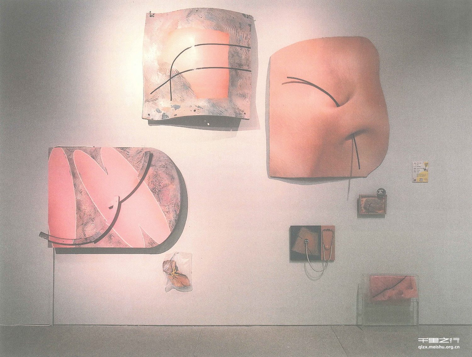 新生细胞、组织由于生长不成熟、不均衡,往往会呈现出某种特殊的颜色和质地,看似美好的视觉体验,却让人感觉到的是刺痛、扭曲、变形。母一单个作品分别代表着一种治疗案例,但是不同于普通的与精神和审美等相关的艺术治疗,我运用反治疗和治疗两种方式去干预不元整的组织和身体。反治疗是在与其本质不相一致的情况下,针对一些特殊情况的治疗手段。当药物治疗无效,且症状在不被引起重视的时候,可能就需要转向被边缘化的或是伪科学的方法。抽象艺术治疗法与其他手段一样,不能解决生命和死亡,但能让人在活着的时候更向往生命,更能有尊严地面对死。^