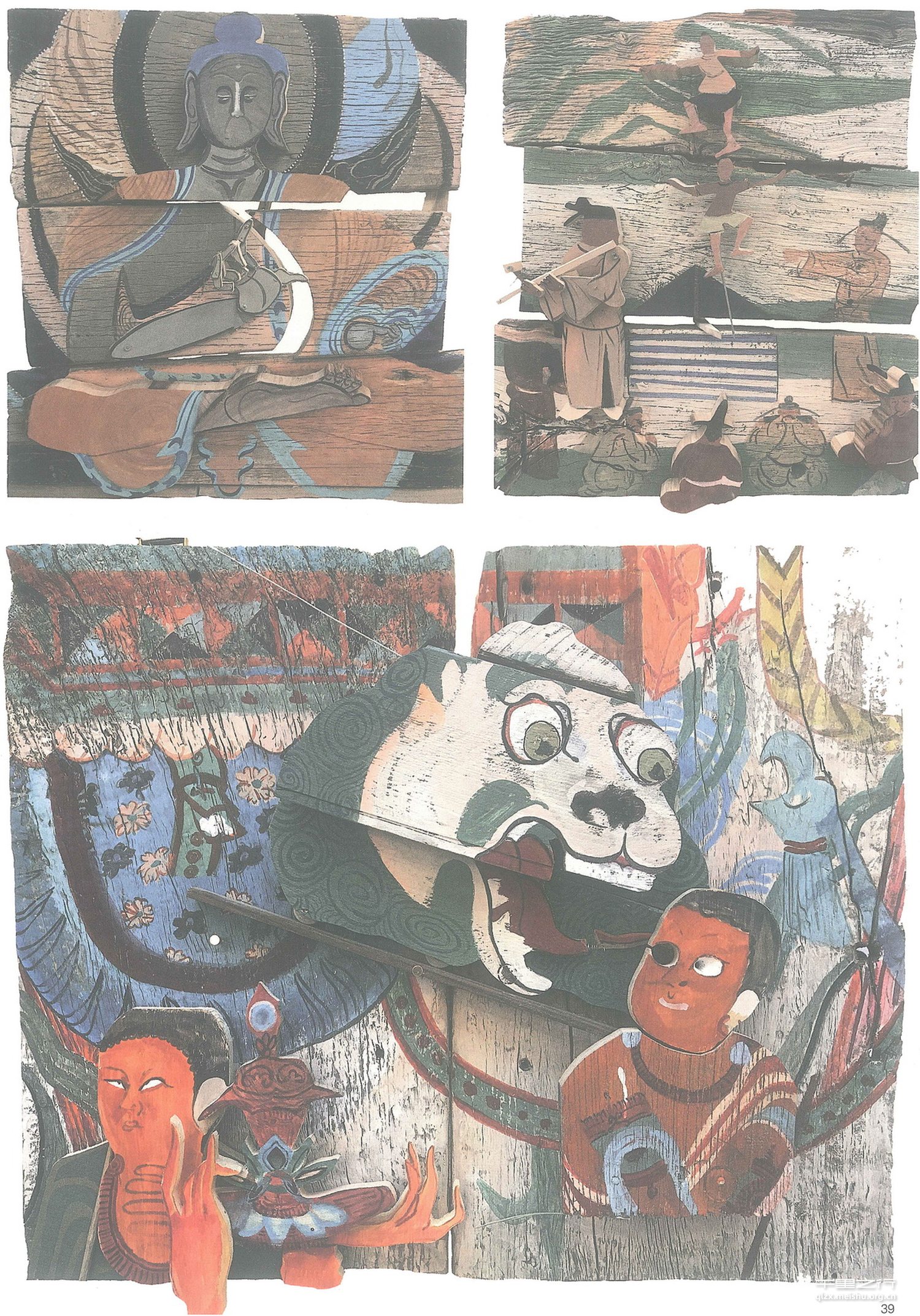 作品灵感来源于敦煌壁画,是基于对壁画的一种“误读”,这些壁画在我眼里从来都不是静止的,相反,在我看来它们是很有律动感的,看见它们就仿佛看见画中人物在跳动,在欢唿,歌舞升平,这些壁画原本就像是被固定在了墙上,而我想把它们全部“释放”。