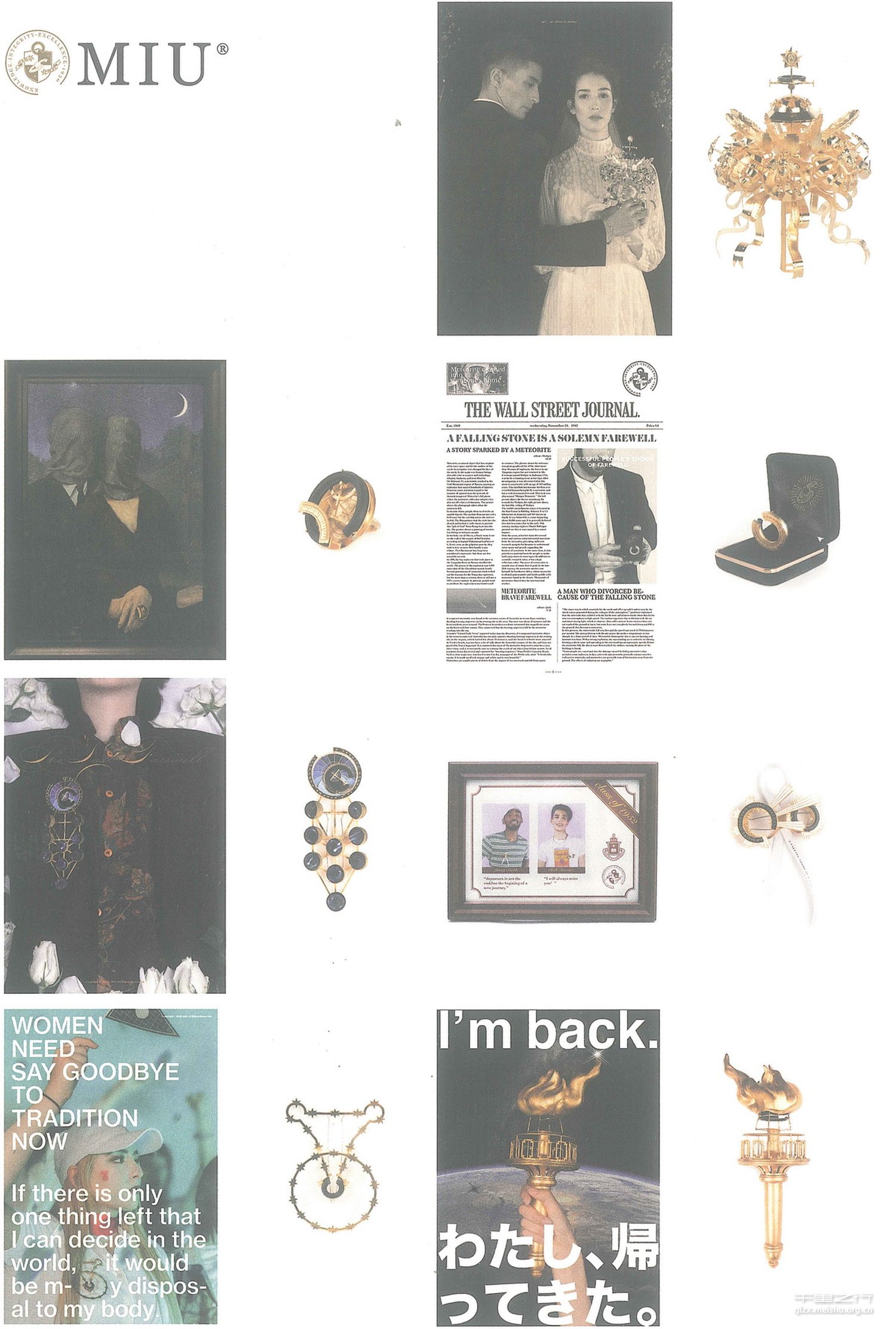 曾志11同学可谓近两年来首饰专业本科毕业生中非常全面且出色的优秀人才,其治学态度一贯严谨扎实,具有鲜活灵动而不乏深刻的思想特质。毕业作品以MIU品牌杜撰的一段关于陨石的历史为依托,继而创造七件首饰作品及相关背景装置图文文献。作品借由对各类别离的洞悉,揭示人类情感的珍贵,对其关注社会问题的思辨力、个人的专业能力及综合实力做出完美诠释。