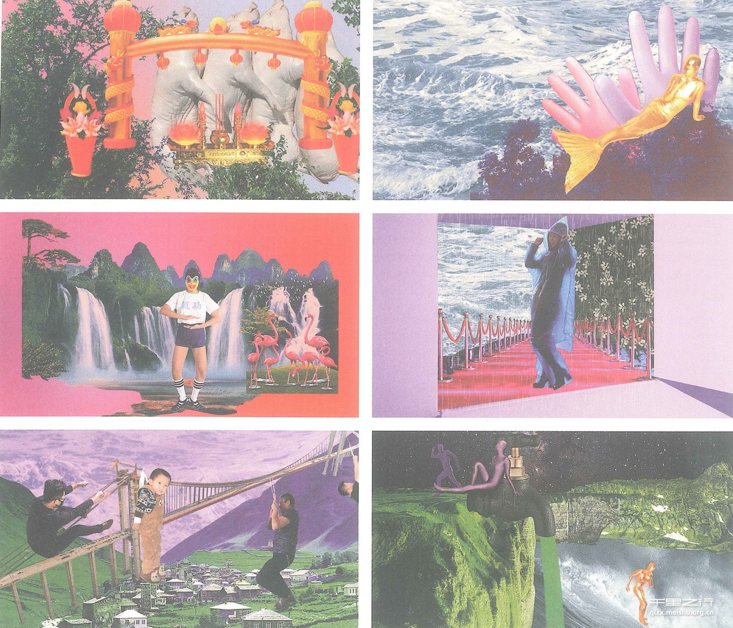 廖煌玉的作品《某宝庙》敏锐捕捉到了大众美学与流行文化,刻意制作了若干类似“卖家图”的广告视频,将现实打散重组和包装,营造了某种“low风”肆虐的超现实拼贴。《某宝庙》以一种“超现实”的批判姿态剥离了真实与想象的差别,它只为预设的轨道重现和模拟的差异生产留出空间。这是关于我们真实生活的回应,作者希望完成一种朴素的重建,或许这种重建只是观者站在自身的角度去感知所见之景象。