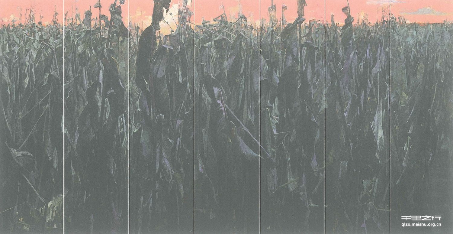 作品《遇》绘画语言朴实,构图新颖有个性,用笔张弛得当。色彩表达凝练、丰富,虚实处理有度……作品体现了作者在创作过程中对艺术的思考和追求,也体现了作者在艺术创作过程中的探索态度。其作品所具有的理性特征和灵动表达,无疑是一个青年艺术家对历史演进、对当下生活、对自我境界很贴切的诠释和表达。