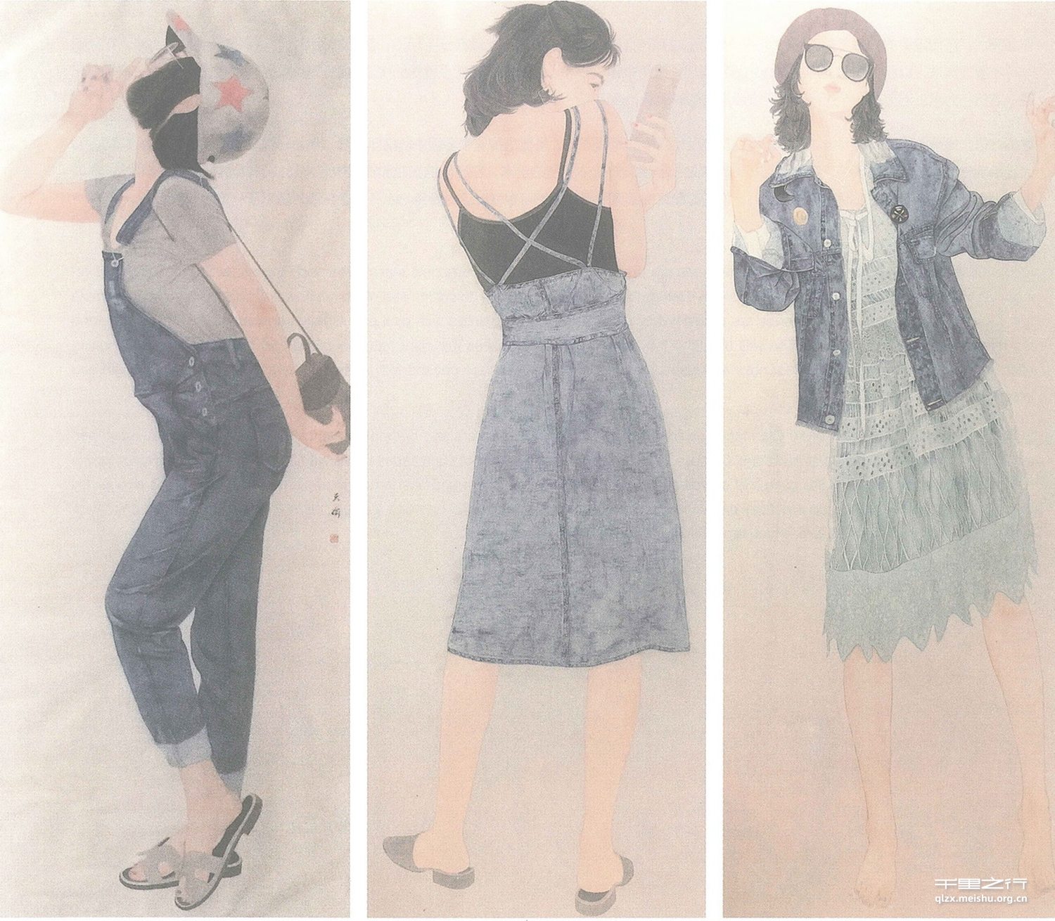 我沉迷于无足轻重的细节里,一片蕾丝、一块牛仔布或是一缕头发,都让我细细探索、反复揣摩……作品辅以富有张力的人物动态,将人物形象撑满整个画面,竖长条的画面形式拉长了观者的视觉效果,营造出一份甜美却不失沉稳大气的画面感。