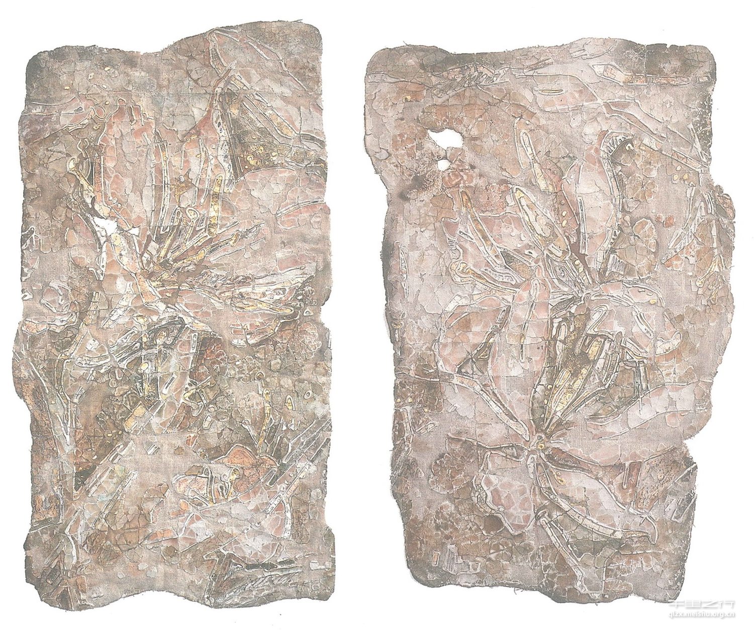 作品《昨昔》一共有9幅,尺寸大小不一,创作内容以花卉为主,表现语言以灰料为主,再辅以蛋壳、金箔、漆、螺钿等。以壁画般的肌理结合花卉,表现童年的记忆,以褐黄色为主调,犹如远去已泛黄的时光,也指温暖的记忆。童年美如梦,令人无限神往。小时候总是带着好奇心去观察生活中的一切,那时候快乐来得很单纯,路边的野花、野草都能成为玩具,总是玩得不亦乐乎。那些花草有的直接拿来吃,有的拿来当乐器,有的用来染指甲,这一幕幕仿佛就在昨昔。现在的人在大城市里忙碌着,每天都顾着自己的形象,已经很少有闲暇时光感受到与大自然亲密接触的美好了。所以我才缅怀一去不复返的时光,才缅怀曾经拥有现在却已失去的东西。
