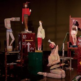 刘毓灵通过其塑造的一堆“小人物”呈现了一个丰富的世界。在具体方法上,采用木雕着色的方法,与夸张卡通的造型结合,改变了我们对木雕的刻板印象。另外,作品中还直接运用了一些生活里的物品,为作品增添了一层现实的维度和温度。总之,通过热烈的色彩﹑鲜活的形象﹑尺寸不一的物件,以及高低错落的摆设,呈现出了一种小人物的大世界。