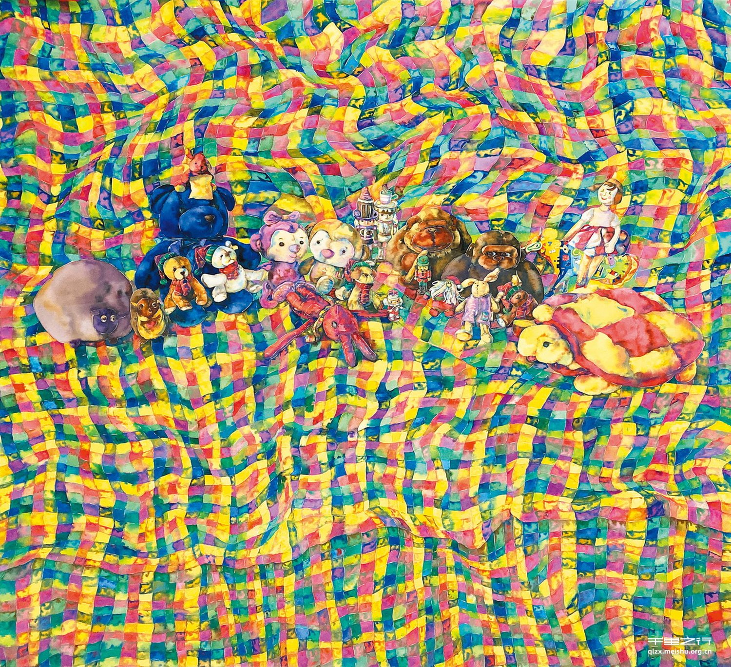小时候玩过的玩偶也许能够很好的代表童年,我认为内心只要保持着绚丽的色彩便可以一直留住童心。这幅画选用的都是一些我曾经玩过的玩具,还有一块颜色丰富的格子布,这些意象组成了绚丽又纯真的童年。