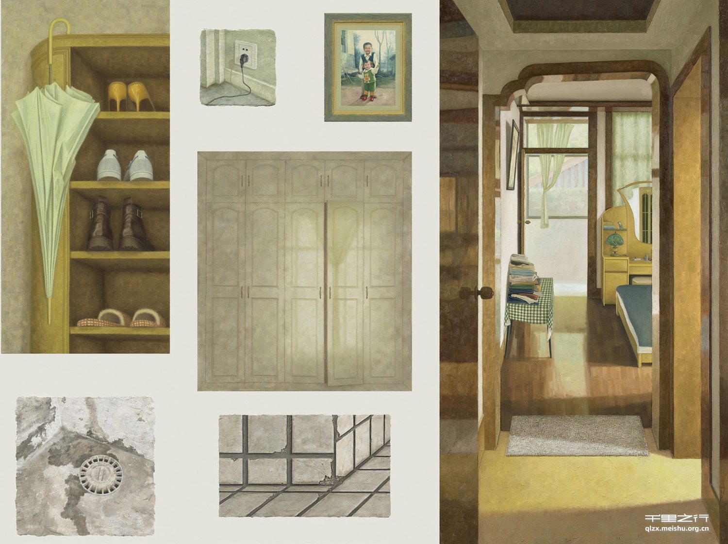 作品名为《26℃》,是因为绘画是视觉艺术,而温度是触感知觉,26℃是人体感觉最舒适的温度,我的绘画是我内心实感的自然流露,我希望这样的画面也能引人同感。出于对存在者本质的沉思,以个人生活的空间为素材来源,截取一些场景片段,加以主观经营的秩序,通过探索综合材料与实物质感之间的契合性,提前制作出如同揭下的墙皮般不规则的粗糙肌理。再者,整体选用暖灰色调,而营造出有温度的、能够传递情绪的极具氛围感的画面。