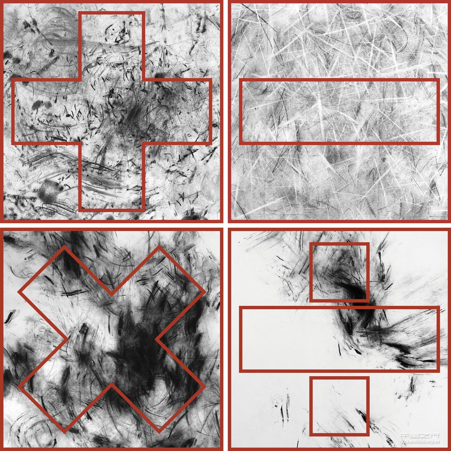 万物的发展规律可同“加减乘除”。学习填充的过程,即“加”;取精华去糟粕,即“减”;顿悟和升华,变得浓烈,即“乘”;最后,都要化繁为简,进行归类,即“除”。创作是以实验的行为方式产生,两幅画面相互作用,背面摩擦创作的方式,以一种“无意识”的创作状态完成抽象画面,脱离手脑直接控制的绘画行为产生,每一幅作品有都其自身的神秘性,不可确定性,和惊喜感。正如意想不到的世事变化,事物发展如此,人的发展亦是如此。