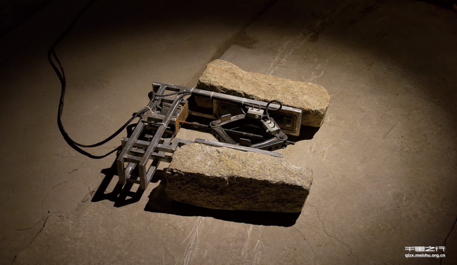 我曾问过教师“我们这个年纪没有经历过什么,能做出来好的作品吗?”教师让我去看看心理医生。后来我也会根据生活中遇到的事情去思考,少了很多没有用的问题。再后来我多想了一些人与人之间的关系问题:如果大家都走在同一条路上,那么除了陌路就是同行。陌路自然没有故事。两块被组装到一起相互运动的石头基本可以表达出我的想法。我的作品包含三件动态装置,分别是两块石头之间相互摩擦、两块石头相互推动、两块石头同时上升和下降。《两块石头- 同行》是其中的一件。对于动态雕塑,我所要做的是准确的控制机械运动来顺利实现语言的表达。
