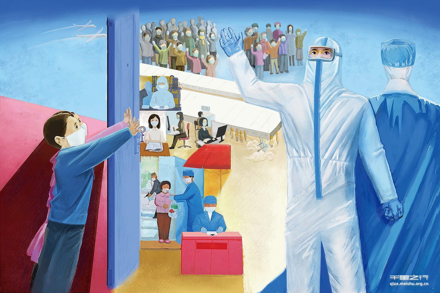 丁思予的本科毕业创作《出征》表现了中国年轻一代艺术家对于在疫情中无私奉献的医务人员的敬畏与关爱,同之前的主题性创作不同,作者采用了更为新颖的构图和更为大胆的色彩表现方式,反映出年轻艺术家的独特视角与全新的创作手法,希望在今后的创作中能继续运用自己观察生活角度来表达个人的所思所想。