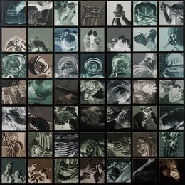 《以太》主要是我对身体这一主题的思考,以碎片化的思索组成一个和谐的整体。用“以太”这一亚里士多德所设想的“组成空间的意识流”的介质为名,有对“躯体”物质性的超越的指向。作品采用负片化与分镜裁切的方式,以写实的手段保留躯干中局部的身份特征,在整体残破的叙事中实则体现了反叙事的目的。负片的形式使一切处于现实的反面,让物象区别于现实,用颠倒的错像回扣对“身体”定义的超越。将苦难、束缚和探索的叙事碎片糅合在一起,为反叙事的目的服务。