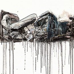 在这一系列以车祸为主的题材中,我想用自己独有的构图手法去表达人们对交通安全的漠视与忽略。随着尺幅的不断扩展,将一个个单独的场景构成一起组成一个像是被人类所破坏、遗弃的世界,这画面中如此“微观”的现场让它们开始带有某些隐晦的故事情节。我并不想单纯地还原一件事物本身,而是想用现有的新奇另类的造型语言来叙述事情背后的感想,以及对工业文明的反思和自我批判。也许这是我想表达的初衷吧。
