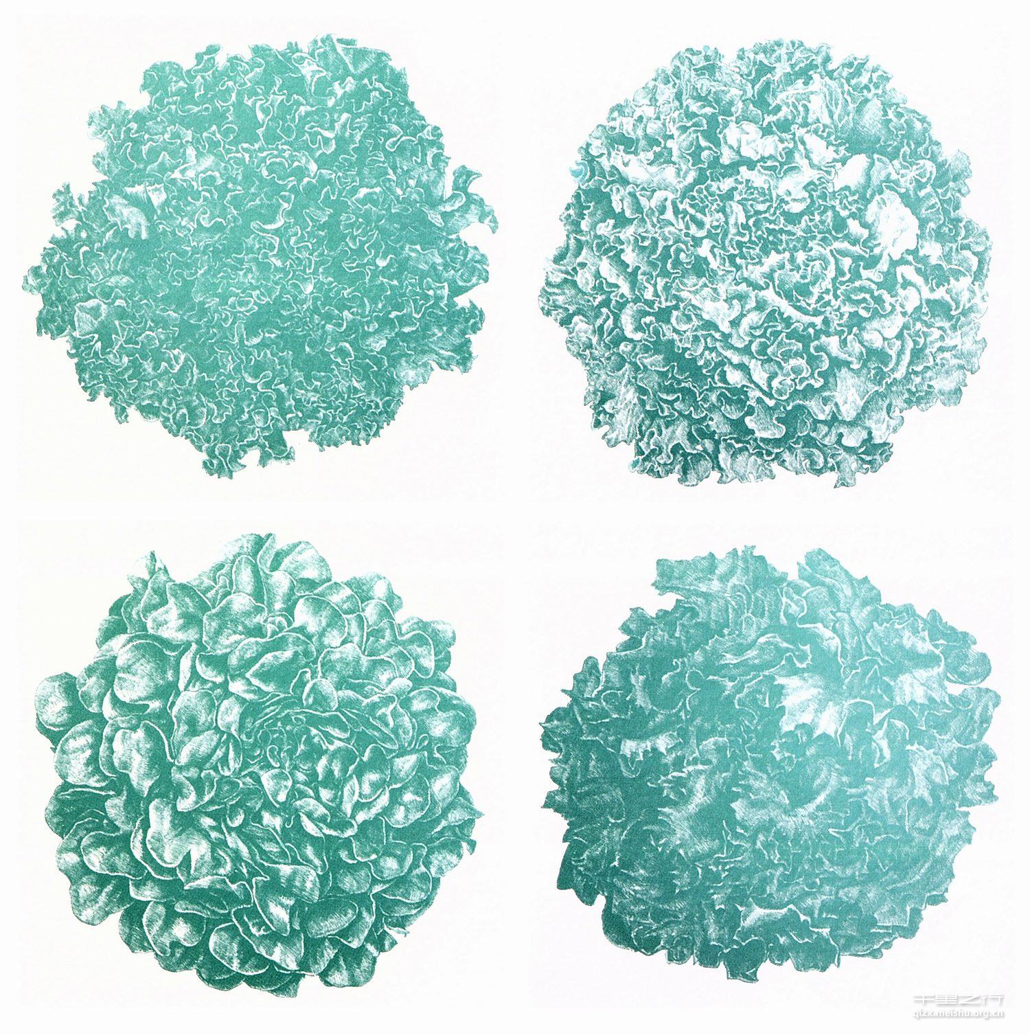 她觉得这就是她想描绘的,一种就在我们曰常生活中天天所见却木然不觉的,一种用心才能看到的美。于是,黄雅琪同学画了这组另一种视角蔬菜的绿色系列。