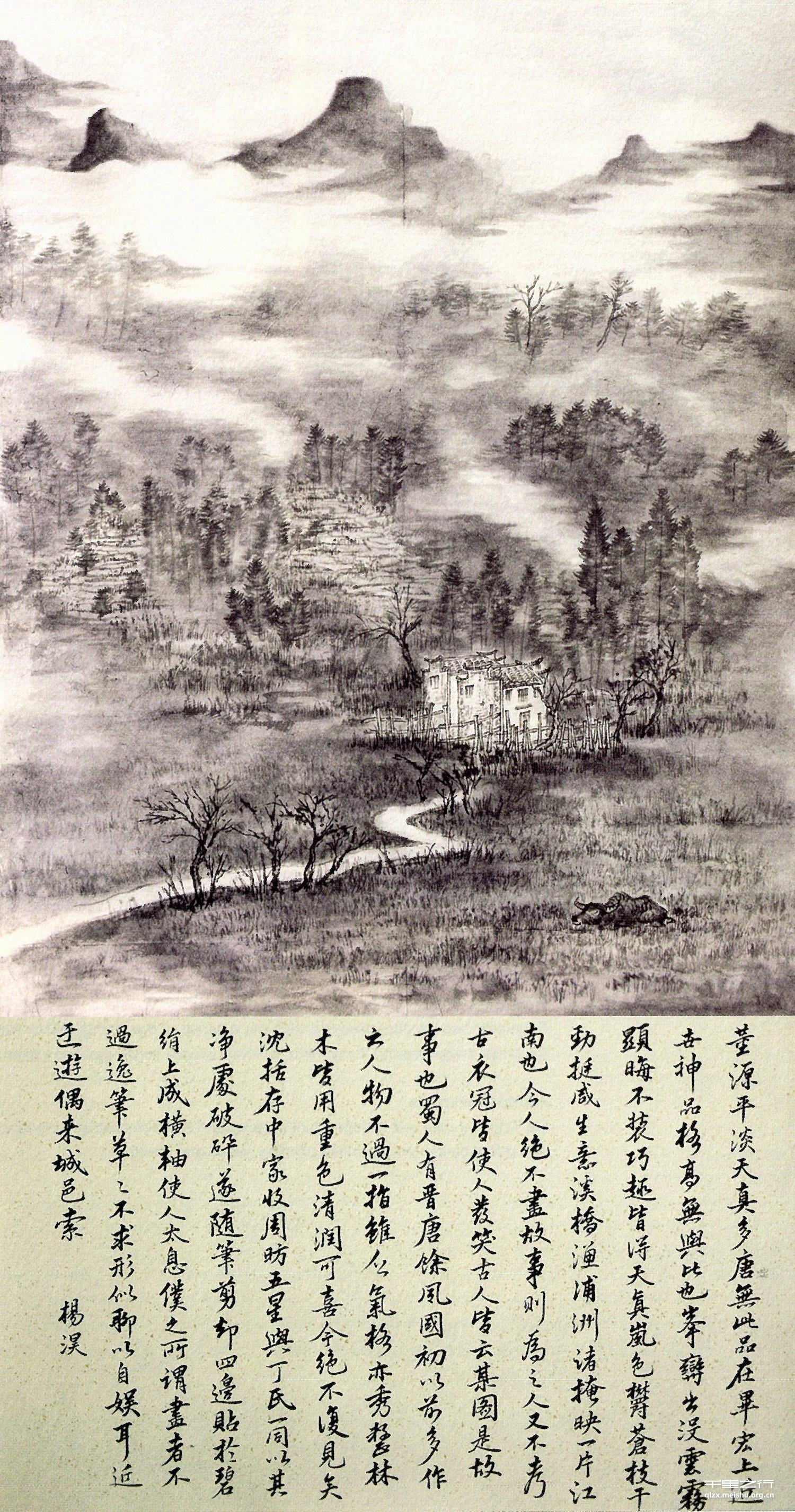 善书者应善画,我院书法专业自设置以来的十年间,始终以此为本科教学之宗旨,故其间书画兼善者不乏其人。杨淏同学即为其中佼佼者之一。其画作墨气迷濛而笔力内涵,将江南乡村优美静谧的景象较好地显现出来。其书作则多以宋人不激不厉的意韵为旨归,以凸显恬静温润之气。现如今专通一门已属不易,书画倶佳更为难事,杨淏同学今后的路还很漫长很艰难,真心希望他能坚持沿此路径一直前行。