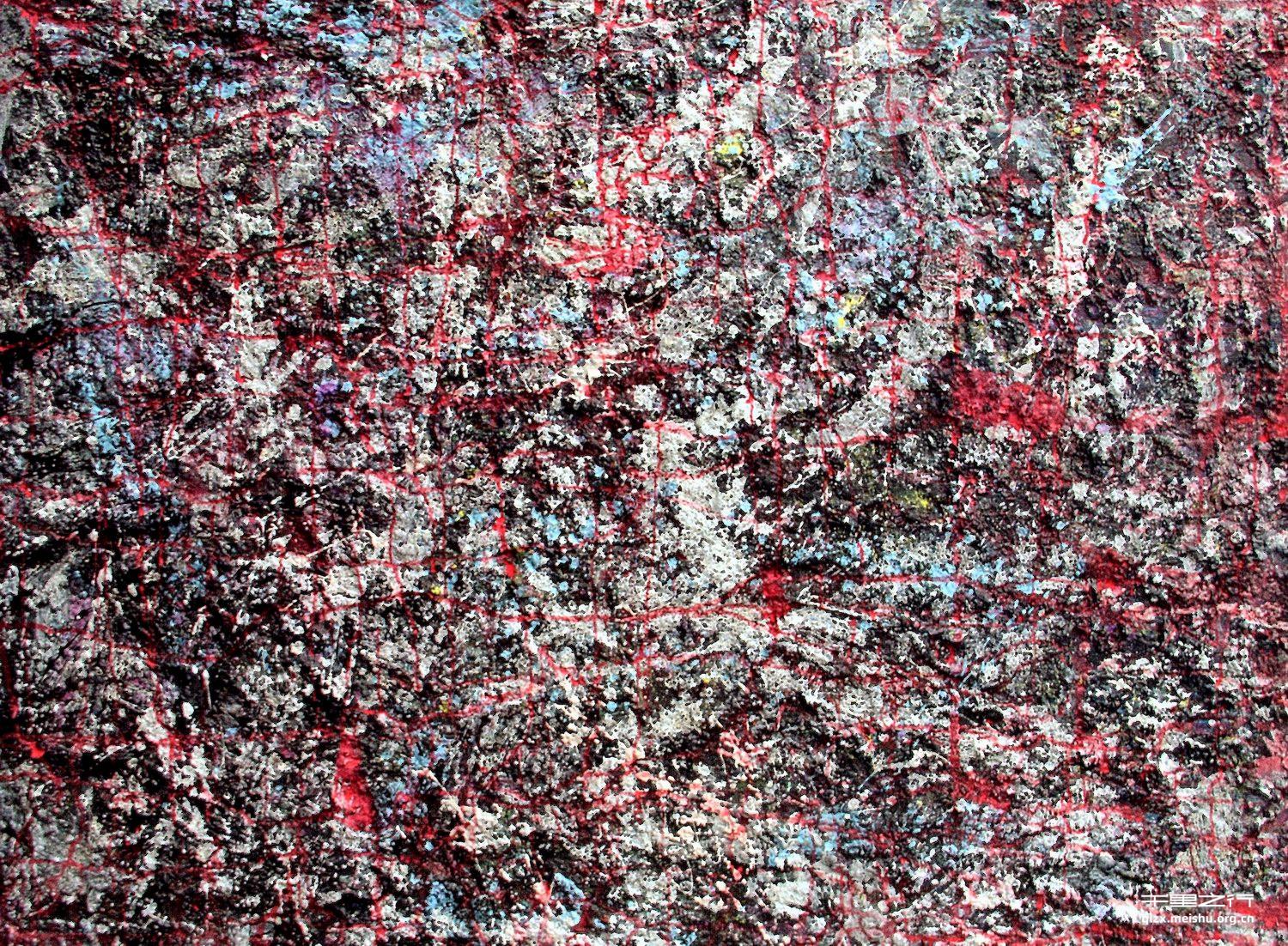 她的作品凝重,凄美。在不断重复叠加堆砌的肌理中,渗透一些灰暗的红色,既像野火又似凝血,从而折射出她对生命问题的思考。这是一组既有情感传达又有当代指向性的作品,特此推荐。