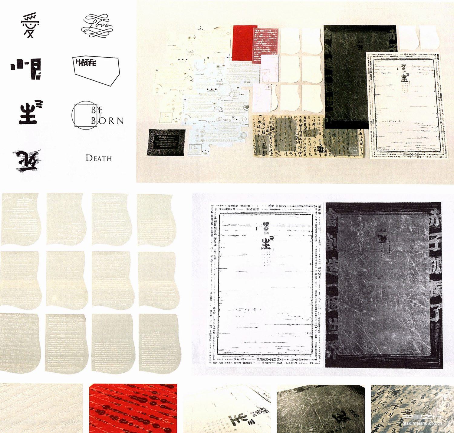 从东西方两条线索出发分别对应爱、恨、生、死四种情感的文本进行解读,试图通过文字造型、文本的调性、印刷的辅助等综合表达东西方价值观的异同。