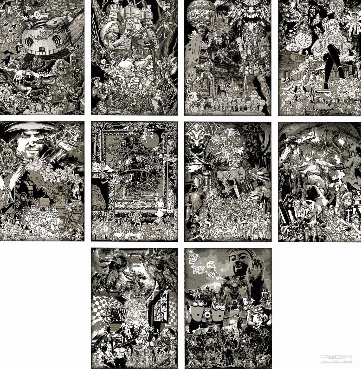 作品使用锌板蚀刻的工艺加上黑白装饰画的构图,重现与记录了九零后一代所玩过的看过的游戏、影视、动画作品。这些记忆带给这一代最直击人心的感受。作品的构图运用了不同时代不同风格不同元素,将这些以锌板蚀刻的技法整合统一在一起。