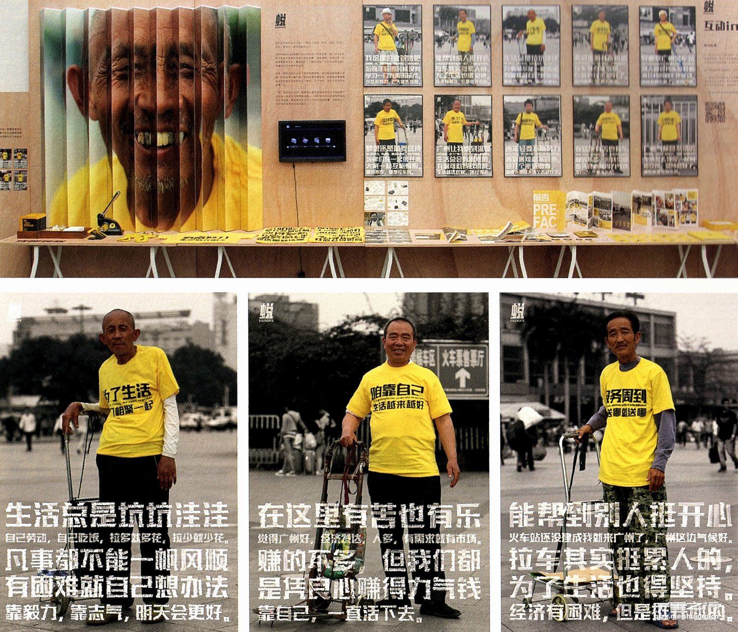 在广州火车站附近,有一群生活在社会底层的弱势群体,他们是行李拉运工。《蜕》这场设计运动,想让更多的社会大众认识到这群人,让社会一起去关注和帮助这群人,并向大众传递他们坚定的生活态度。