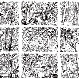 春日的虎跑公园,浓郁葱茏。我常往返其间,或呆坐在凉亭。真喜欢这可爱变幻之地春风沐而,鸟飞虫鸣。在古韵清净的地方,画意油然而生,于是有了这十幅小品,现在看来,春意有余而笔力不足。勉之。待来年春返,或可以做“复照青苔上”。