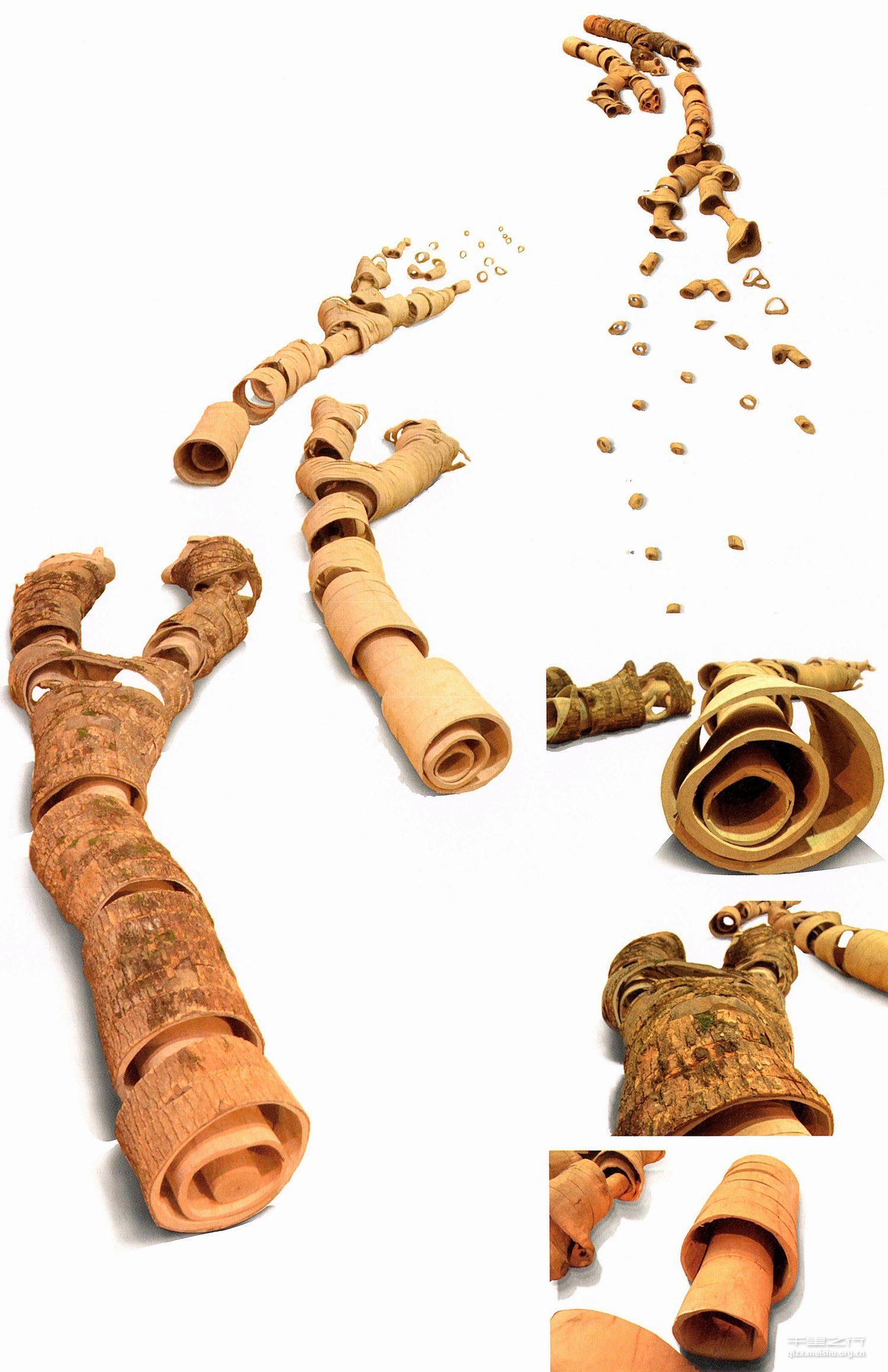作者最初被损坏的迷人的结构断面所吸引,这样可视化的生命和时间激发作者对物体进一步的剥离和还原。尘嚣中的年轮是树木书写的文字,两位学生历经数月层层解读,最终将这棵香樟的历史展现开来并呈现给观者。