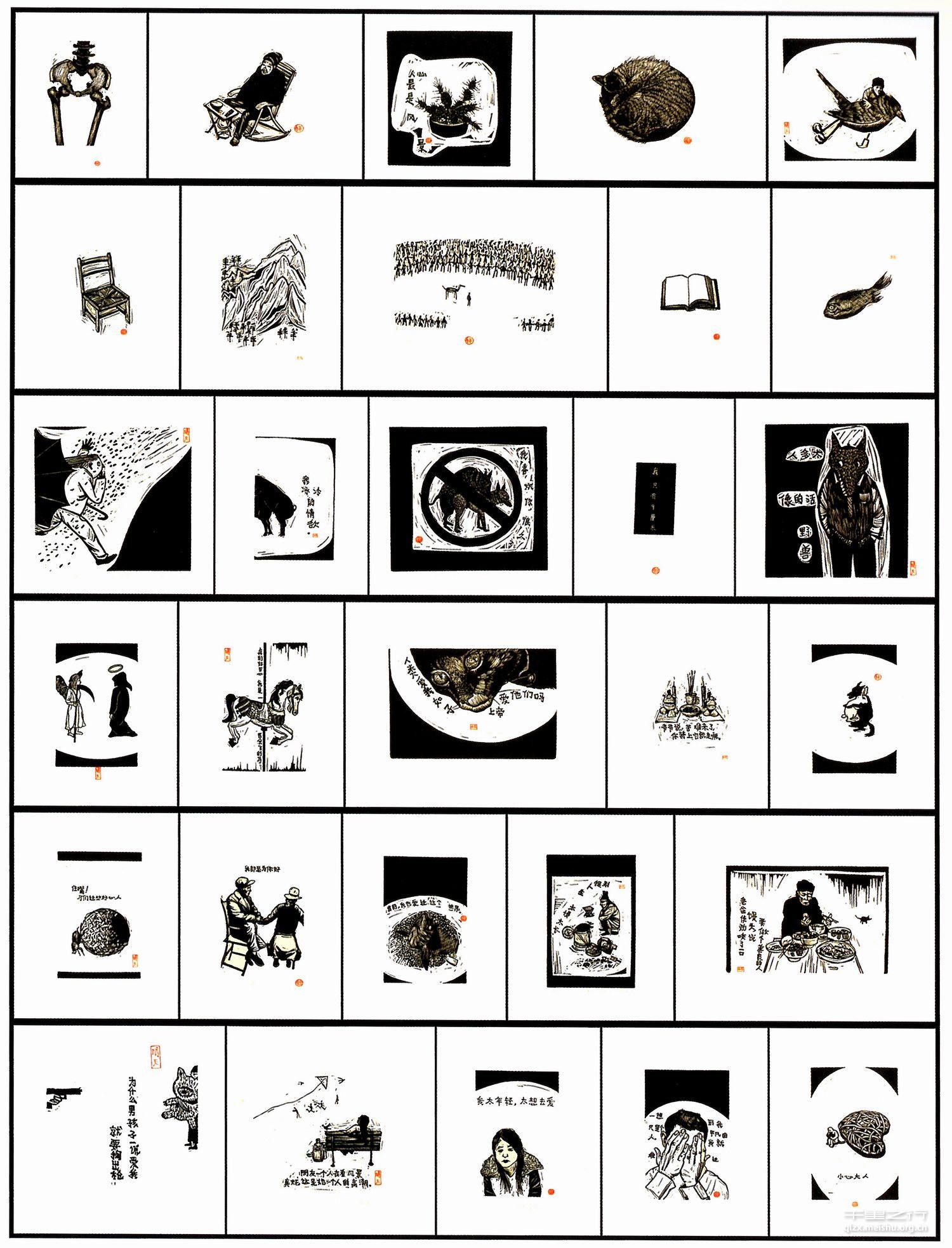 “格物”一词出自《礼记•大学》,是儒家认识论的一种,既是哲学命题也是现实问题:我们是经由“事、物”而认知这个世界和自我么?《格物志组画》不说明什么,它只是集合了我乐天的性格色彩和趣味的思想。理性的思考需要感性的表达,趣味的思想或可以使作品具有春风化雨的力量。另一方面,我试图弥补和化解黑白版画在一般视觉上的“弱点”,增加它思想上的张力和可读性。就像一个天生在相貌上逊色的孩子,我要让他充满智慧和风趣。这既是我对黑白版画处境的思考,也是我对个人生命经验的透析。