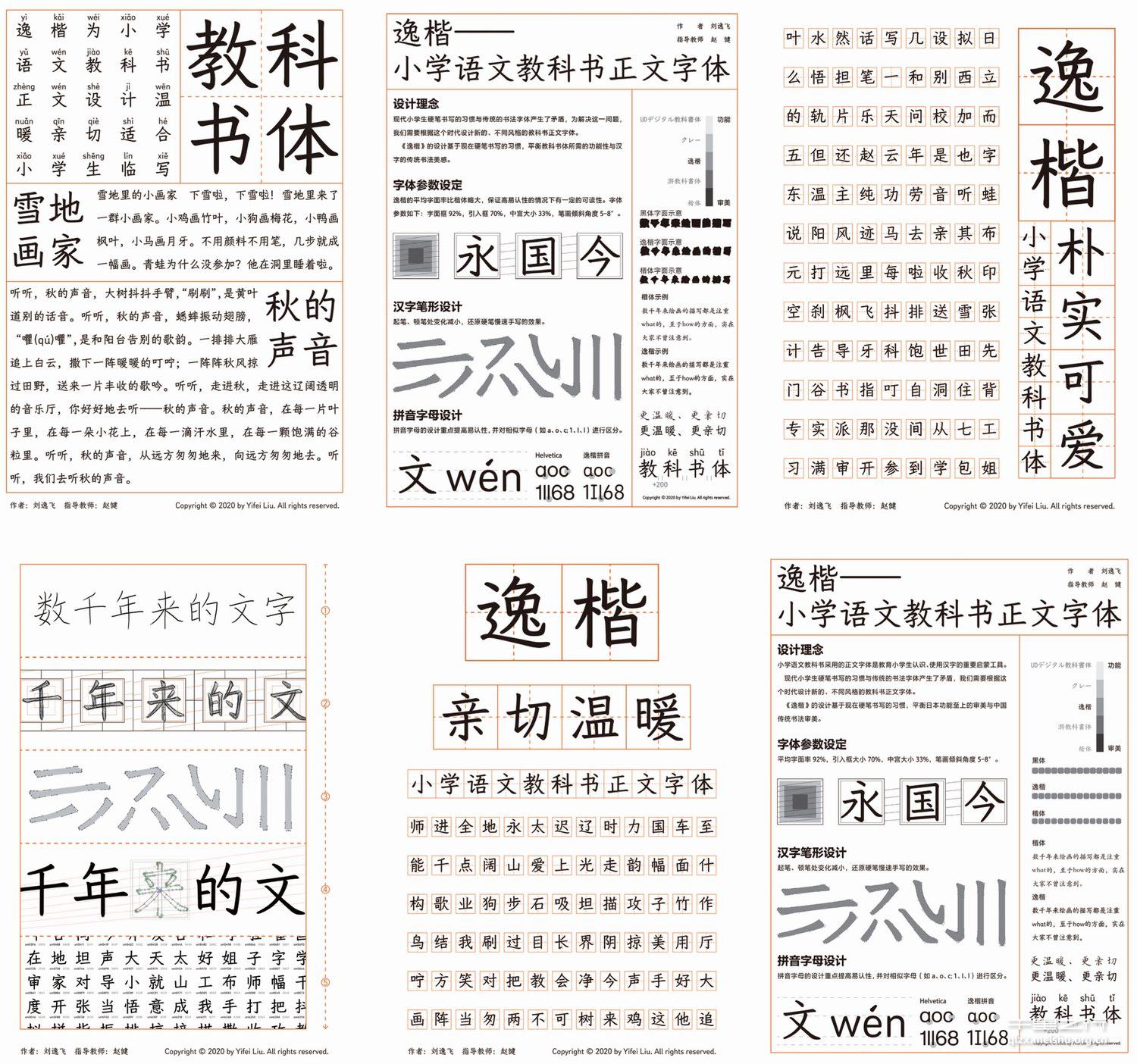 《逸楷》是一款立意为小学语文教科书设计的正文字体,作者期望能以这一毕业设计作品为起点,尝试着为当下中国小学生教科书字体的设计与应用提供有价值的思考和多样的可能性。从中,我们可以体会到设计者在其中投入的非常高的热情和责任心。《逸楷》的造型特点主要是考虑到硬笔书写工具给小学生在起步阶段的书写习惯所带来的诸多影响,同时又强调了恰当地承续传统汉字书写的审美价值重要意义。最后,从教科书内文中实际的排版效果方面来考量,《逸楷》的设计更加体现了它现实性和实用性,是一款质量和完成度均已趋向成熟的设计作品。