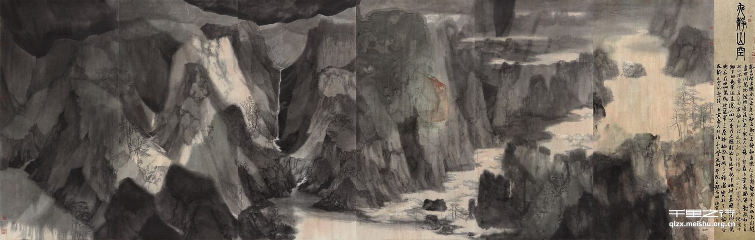 Executed with outstanding artistic ingenuity and dexterity, Wang Jie’s Silent Mountains, Good Night brims with visual and thematic richness and grandeur. In the style of a typical Chinese ink painting, it captures at once the visual splendor and spiritual serenity of sprawling mountain ranges and torrential rivers frequently encountered in Chinese geography. On the whole, combining the artist’s real-life experiences and persistent artistic practices, this work manages to explore how the capacity to evolve and reinvent itself has always been characteristic of traditional Chinese aesthetics, thus exemplifying how it is possible for contemporary young artists to not only productively borrow from established classics, but much more importantly, to fruitfully develop the Chinese-style ink painting to accommodate the global contemporary art landscape.