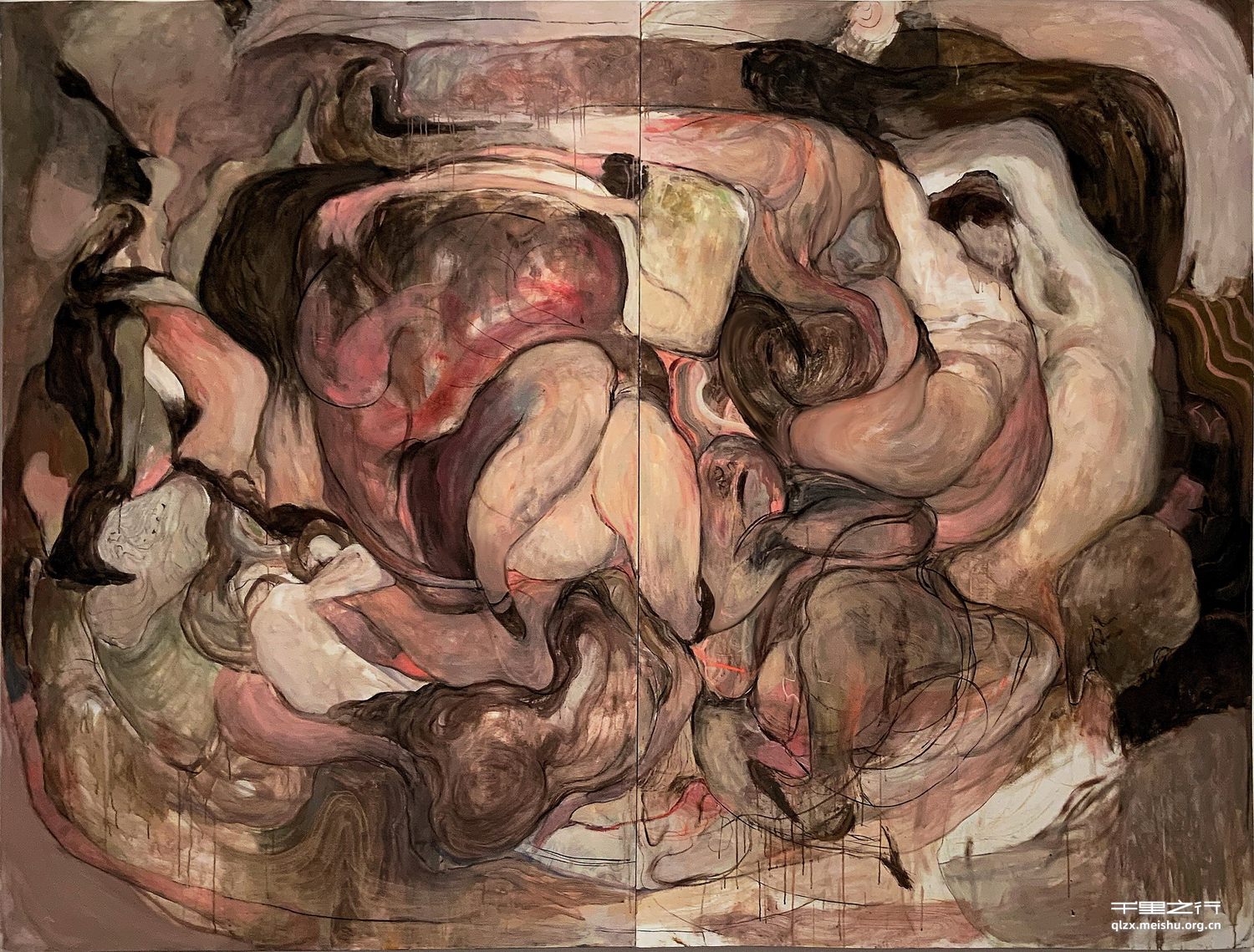 In my paintings I have drawn bodies of various shapes, flowing like a liquid, dry and hard like a dead tree, embodying the various disorganized forms of self-knowledge in people's minds, extending, dissolving and interweaving these bodies, squeeze each other, and mutual integration, forming a squeeze and flow, soft and powerful picture. It expresses the exploration of one's self-identity under the influence of the space of the internal (lack of self-cognition) and external (severe social homogeneity) parts.