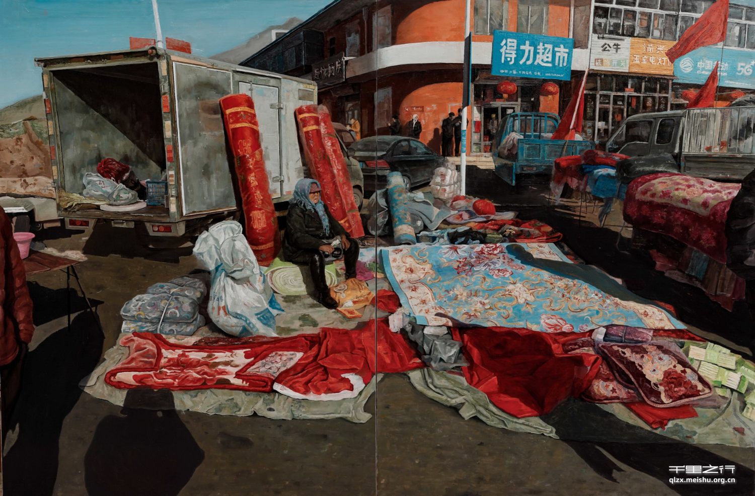In the economy is relatively developed city, like a big fairhas been rare, such as rural market is in the time of the underdeveloped commodity economy trade legacy of a form of trade, is also the most as a child I like to go to places, bazaar in meet the material needs but also gives me a lot of joy and surprise, leave a lot of good memories. I chose the market as the theme of my creation, in order to remember the beautiful memories that belong to me.I used the way of painting to reproduce the atmosphere and familiar feeling of that small instrument, and used the method of concrete realism, brush strokes and scrapers to create the details of the picture, and used simple language to interpret the simple folk customs of my hometown market.