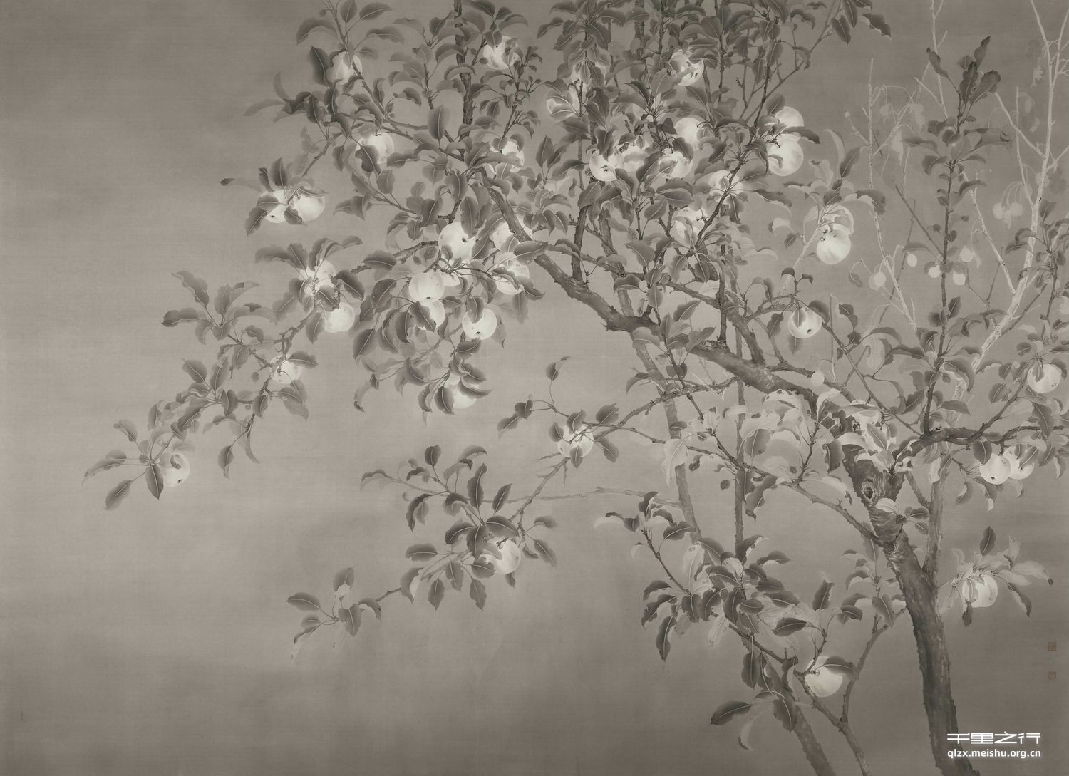 蓟州写生作之,果树穿插自然,变化丰富,采用墨笔画就,意在表现其庄重平和之意,芝兰玉树,亭亭玉立。不让圜丘中,粲洁华庭际。